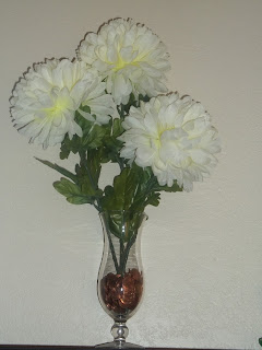 A Simple flower arrangment. I used pennies in the vase to weigh it down!